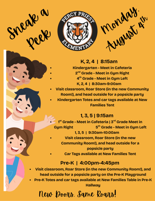 - August 4th: Sneak-a-peek! Families are invited to come meet their teacher and bring school supplies to the classroom. Pre-ordered school supplies will be delivered to your child’s classroom at this time. More details below.