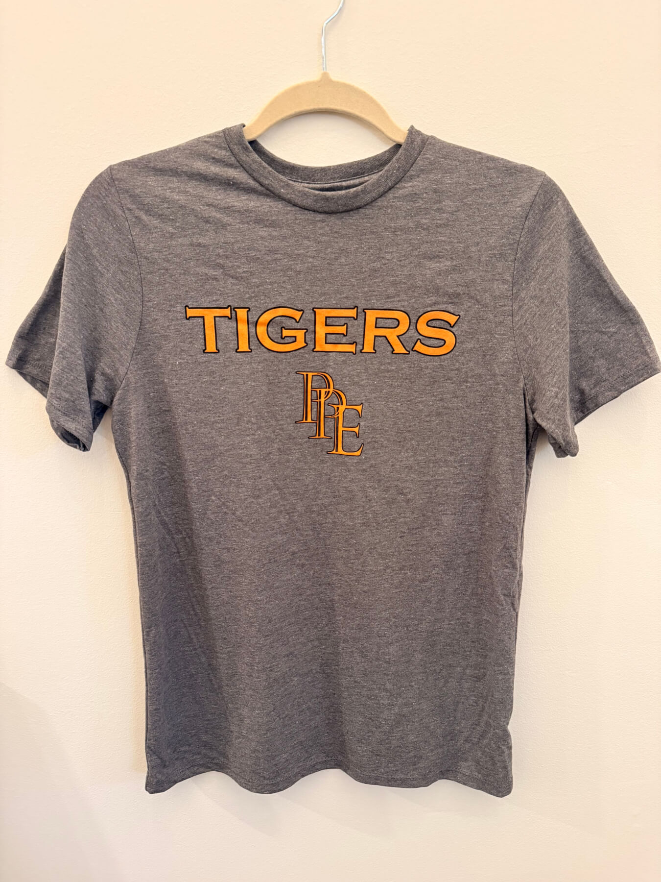 Gray Tri-blend PPE Tigers spirit shirt. The perfect Percy Priest shirt!