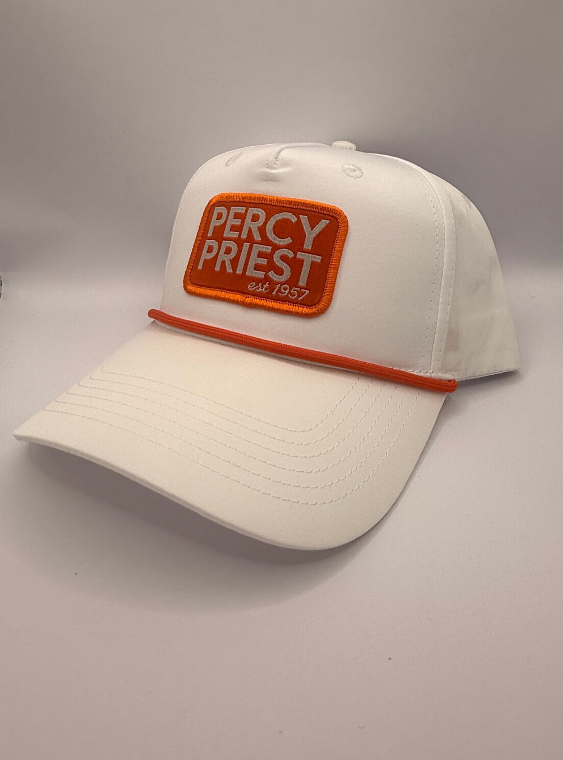 The white rope hat is a fit that everyone will love! This white rope hat with an orange rope and a retro PERCY PRIEST patch that is the perfect fit for kids and adults!