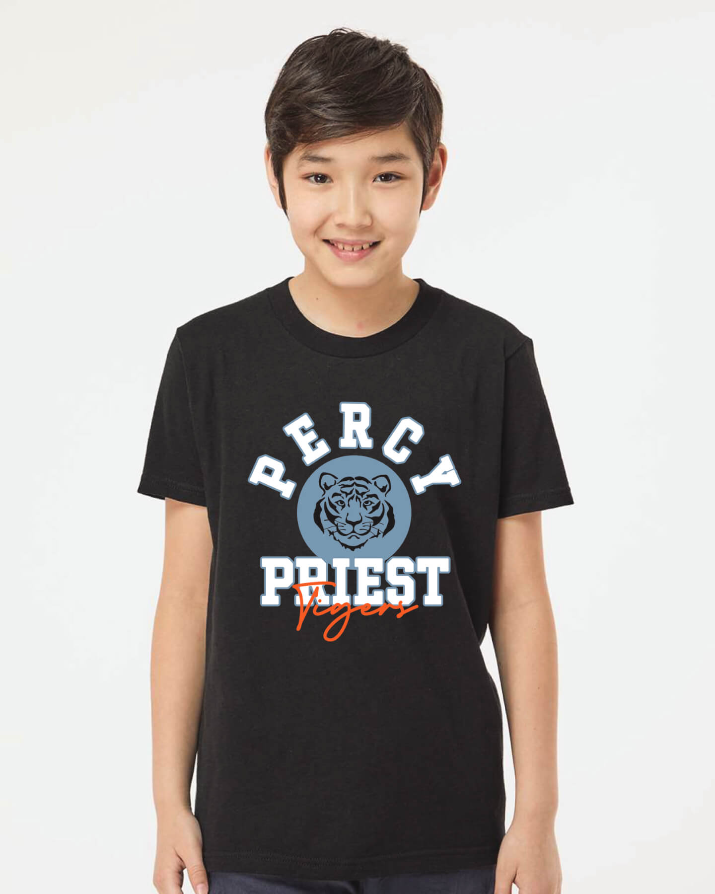 Youth black sport-tech shirt with Percy Priest Tigers logo